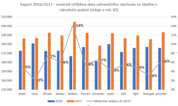 Graph: Export in the Czech Republic in 2016 and 2017 (millions of CZK)